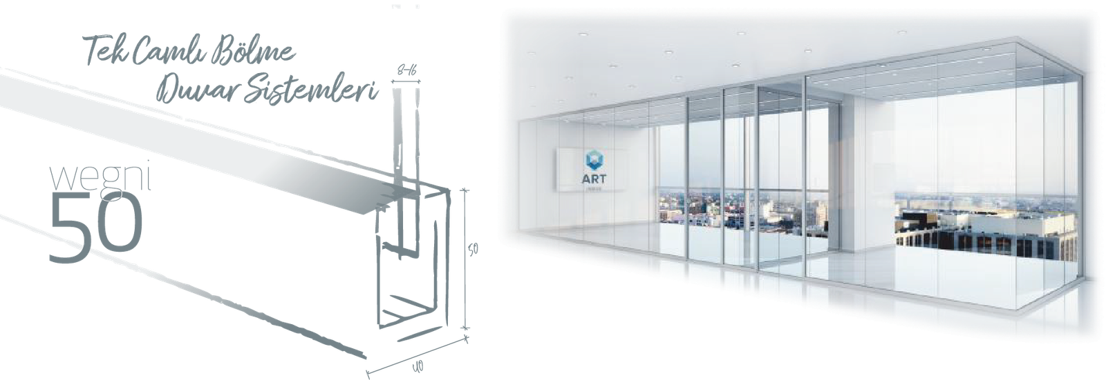 Mekanların daha fazla ışık almasını sağlarken, Geniş açıklıklara da çözüm üretebilen, Düşey profilsiz bölme duvar sistemidir.